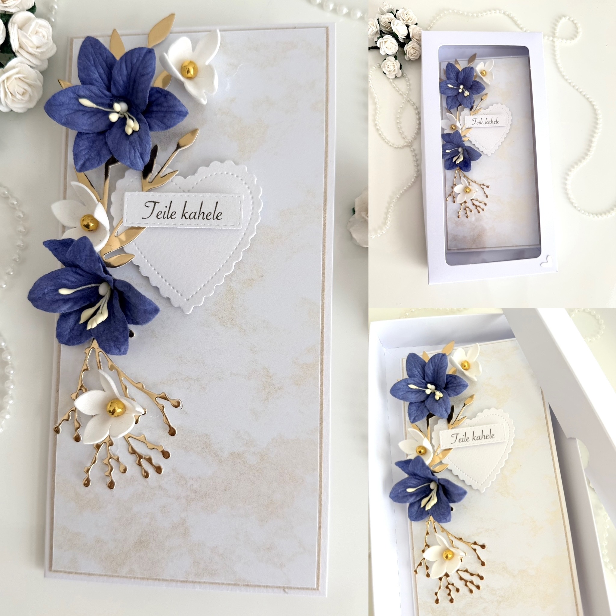 Käsitööna valminud pulmakaart kuninglik sinine