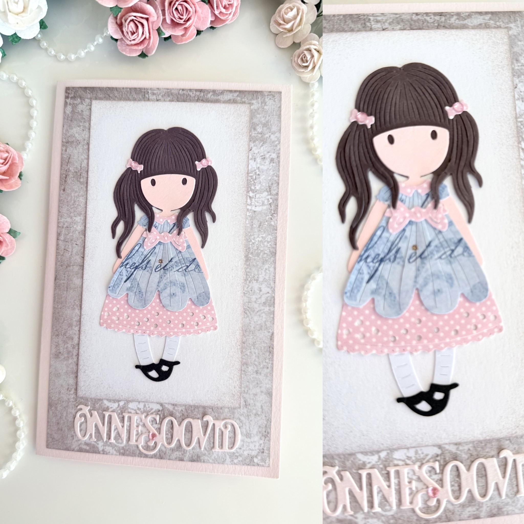 Antud käsitöö kaart on sobilik kingitus armsale laspele. Kahepoolne kaart on roosat tooni 300g/m² kartongist. Kaunistuseks on kaardile lisatud 3D efektiga tekst, tütarlapse kuju ja mõned lilled.