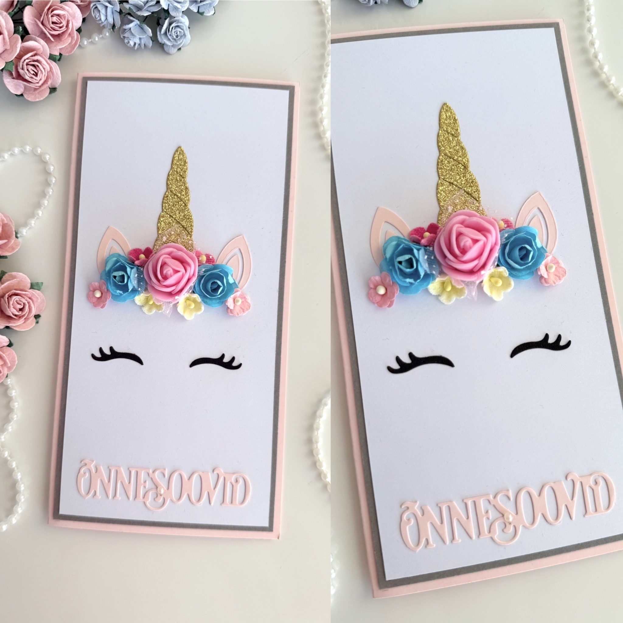 Ükssarvikuga õnnitluskaart on uhke kingitus müstiliste ükssarvikute fännile. Käsitööna valminud kaardil on pilkupüüdev roosakvartsi tooni ükssarvik. Kaunistuseks lisatud kaardile roosakvarsti tooni kartonigist lipukesed januse alus ning mõned roosad sillerdavad pärlid. Kaardil on kaardi toonis tekst õnnesoovid ning vajadusel muudetav sünnipäeva lapse vanus. Soovi korral saab lisada kaardile sünnipäeva lapse nime. Anna oma soovist meile teada.